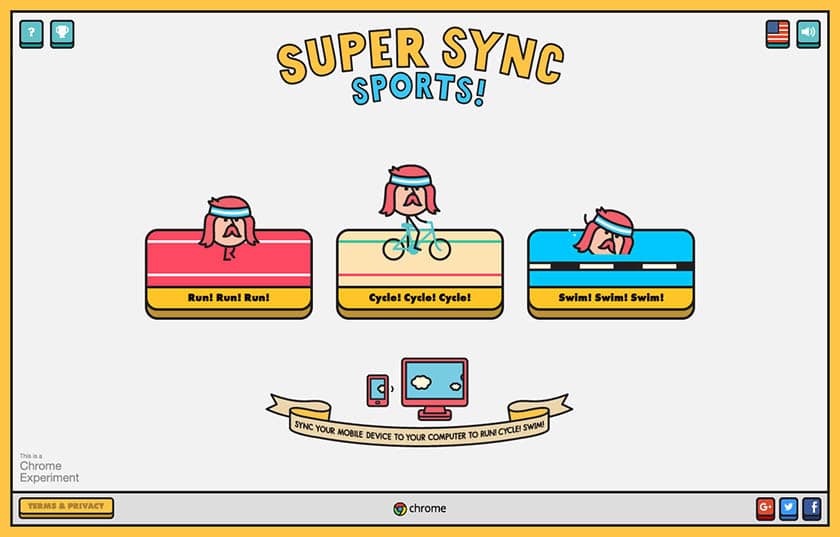 Users who visit http://chrome.com/supersyncsports/ can play a range of button-bashing sports games using their mobile phone as the controller. I helped out towards the end of the project with design/animation implementation (using swiffy and css) and some functionality tweaks and bug fixing (JavaScript). It was great fun working on such a technically challenging, beautiful and fun project with a whole bunch of clever people!
